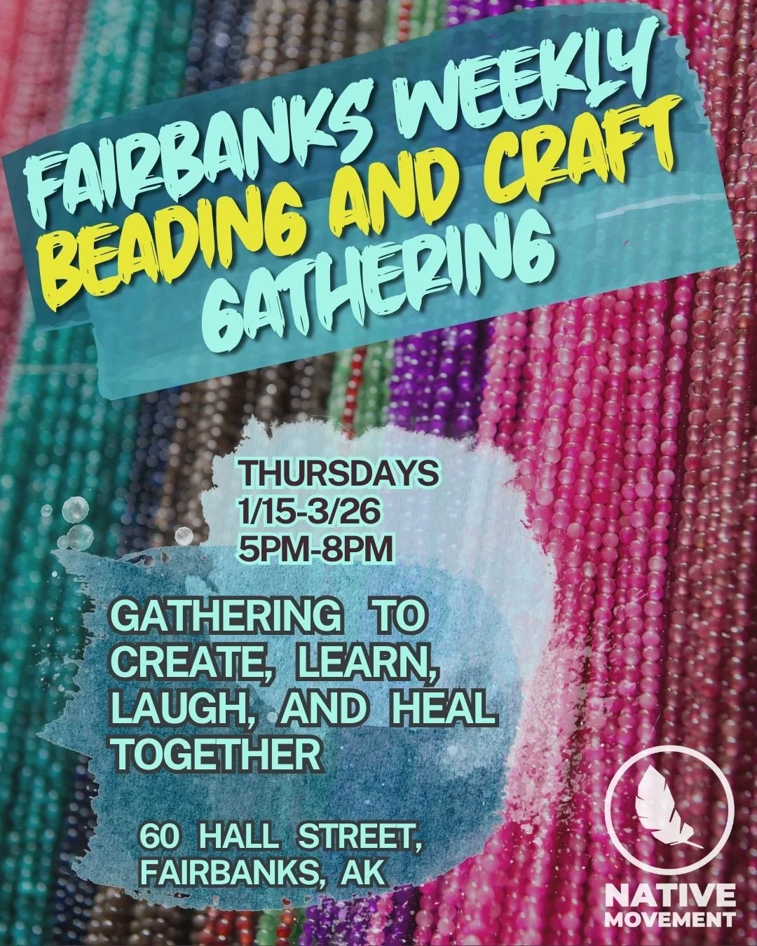 Back to All Events Fairbanks Weekly Beading and Craft Gathering Thursday, March 5, 2026 5:00 PM 8:00 PM Google Calendar ICS Join us weekly for a beading and crafting gathering at 60 Hall street Fairbanks. Thursdays at 5pm-8pm, from 1/15-3/26.Bring supplies, or a current project and let's gather to create, learn, laugh, and heal together!