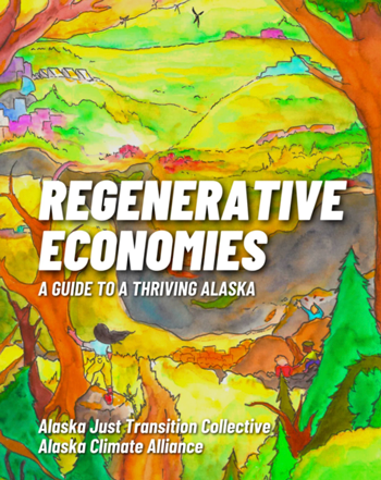 “Regenerative Economies: A Guide To A Thriving Alaska” is a collaborative piece produced by the Alaska Just Transition Community and Alaska Climate Alliance. This zine defines successful regenerative economies and highlights leaders across Alaska already cultivating just transition in their communities.